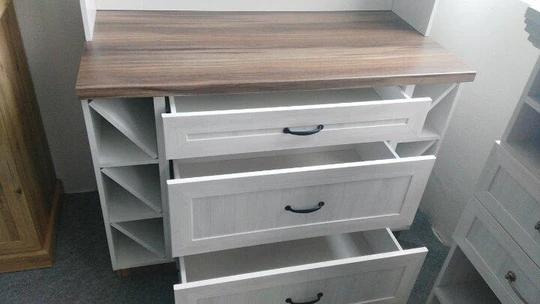 Výhodou tejto zostavy je nielen vycibrená kombinácia francúzskeho štýlu s jemnými detailmi, ale aj kvalitné spracovanie nábytku. Ten je vyrobený z kvalitnej melamínovej LTD dosky, ktorá sa vyznačuje svojou stabilitou, mechanickou odolnosťou (pr. proti poškriabaniu) a tepelnou odolnosťou. Je tiež veľmi jednoduchá na údržbu a ľahko sa omýva. Vrchné skrinky, ktoré sa otvárajú hore, majú piestový mechanizmus. Úchyty sú kovové.