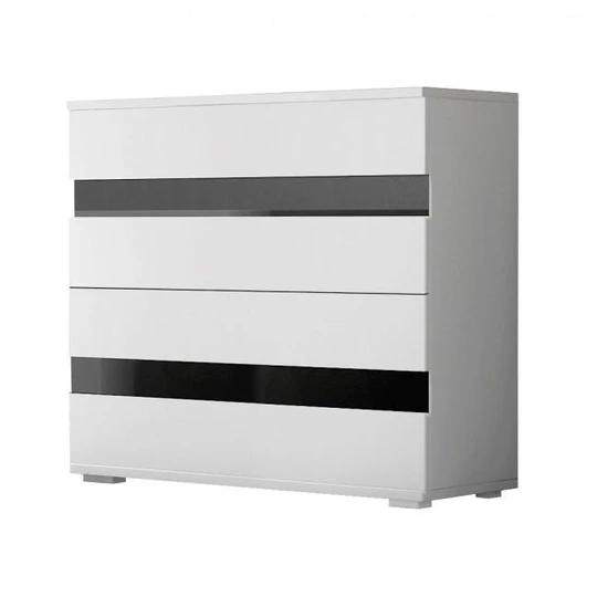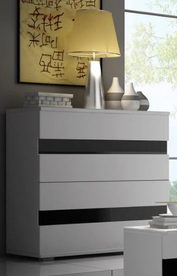 Elegantná komoda je čerešničkou na torte pri dolaďovaní spálne. Lucca je tvorená štyrmi zásuvkami, do ktorých môžete umiestniť všetko, čo potrebujete uschovať. Je vyrobená z kvalitnej laminovanej drevotrieskovej dosky, a je teda odolná voči poškriabaniu, slnečnému žiareniu a krátkodobému pôsobeniu vody.