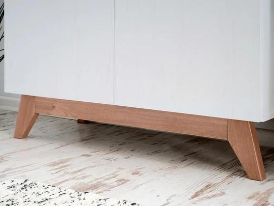 Skriňa má dvojité dvere, za ktorými sa nachádza šatníková tyč. Je vyrobená z kvalitnej laminovanej dosky LTD, vďaka ktorému je odolná voči poškriabaniu, oderom, blednutie a krátkodobému pôsobeniu vody. Je opatrené tiež hranou ABS, ktorá zabraňuje možnému poškodeniu. Vysoké nôžky skrine a úchytky sú vyrobené z masívneho dreva.