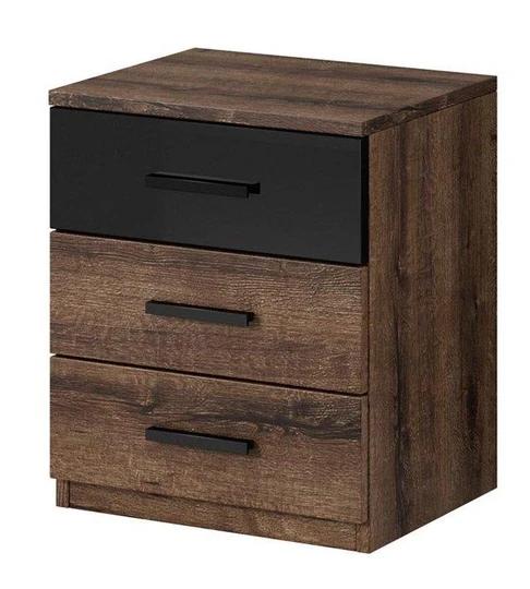 CHANELL nočný stolík, dekor dub monastery/čierny lesk