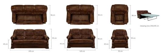 Zostava sa v základnej verzii skladá z rozkladacie trojpohovky 3F, dvojpohovky bez funkcie rozkladania a kresla. V prípade potreby je možné zakúpiť trojpohovku bez funkcie rozkladania.