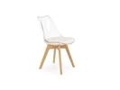 Dizajnová stolička vyrobená z bukového dreva a polykarbonátu v priehľadnej farbe. Sedák je čalúnený eko kožou.