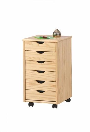 Zásuvkový kontajner je vyrobený z lakovaného borovicového dreva, ktoré ponúka unikátne prirodzený odtieň, pružnosť, pevnosť a výbornú odolnosť voči vlhkému prostrediu. Kontajner bol navrhnutý tak, aby bol maximálne funkčný a vďaka kolieskam