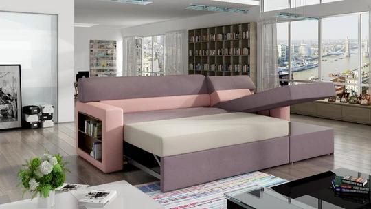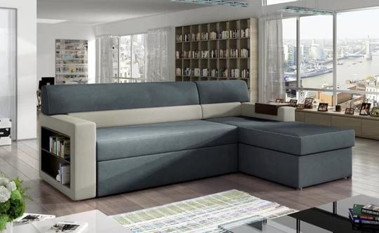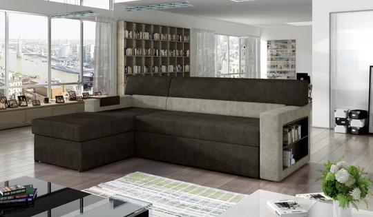 INGRID rozkladacia rohová sedačka s knižnicou a odkladacou policou