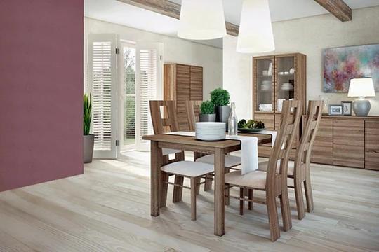 Jedálenský stôl je vyrobený z kvalitnej laminovanej dosky, ktorá je funkčná vďaka svojej odolnosti a jednoduchej údržbe. Keďže sa jedná o systémový nábytok, možno dokúpiť aj ďalšie kúsky z programu Molly a zostaviť si tak domácnosť podľa vlastných predstáv.