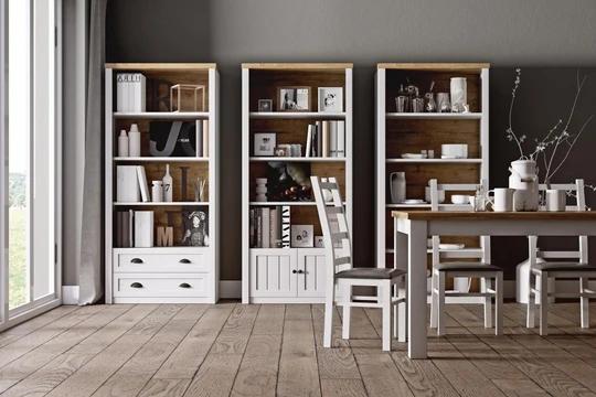 Vitrína disponuje úložným priestorom, ktorý obsahuje police aj zásuvky. Pre dokonalé zladenie vášho nábytku odporúčame vitríny kombinovať s ďalšími produktmi zo zostavy FRANCE