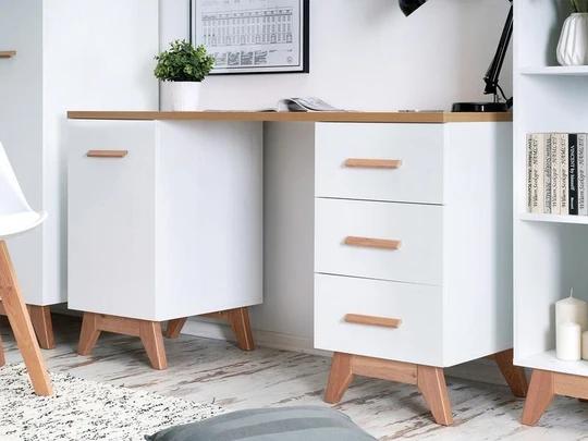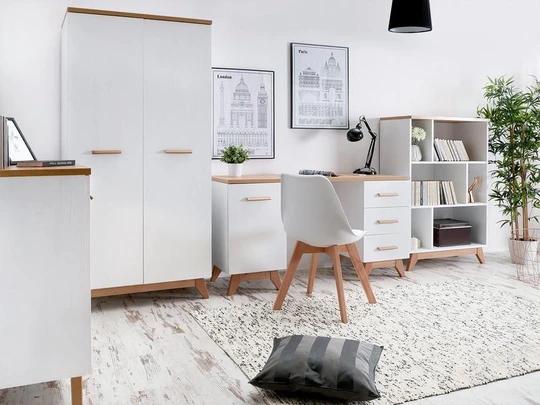 Písací stôl Georgia GE12 predstavuje ideálne spojenie moderného škandinávskeho dizajnu, praktickosti a komfortu pri každodennej práci či štúdiu. Vďaka nadčasovej kombinácii svetlého dekoru borovica Andersen s akcentmi dubu Nash pôsobí vzdušne a ľahko zapadne do pracovnej miestnosti, študentskej izby aj domácej kancelárie.