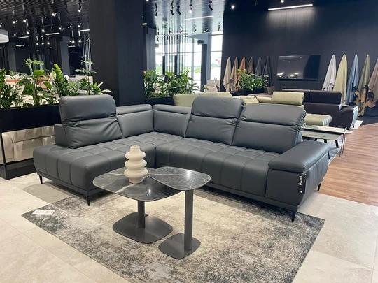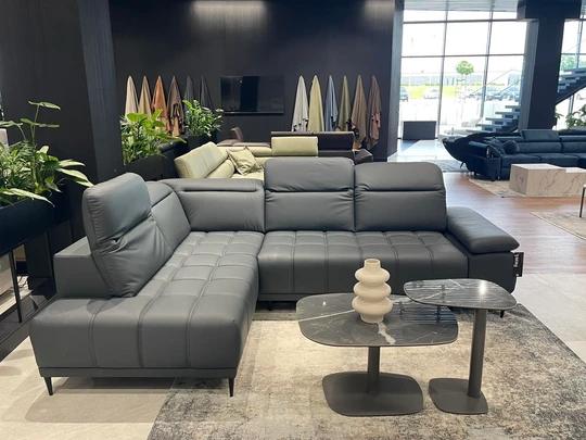 Moderná rohová sedacia súprava s nastaviteľnou hĺbkou sedenia (na elektrinu).