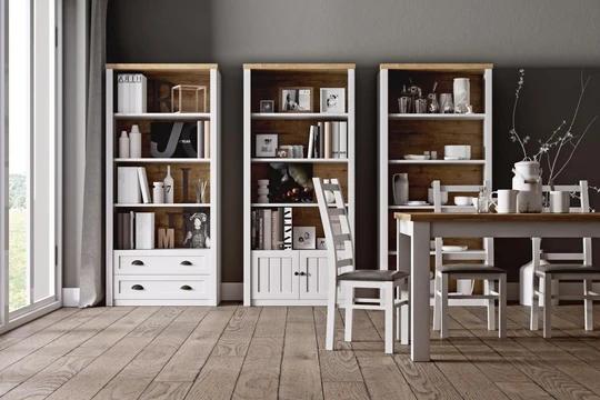 Trochu toho letného vidieckeho štýlu, elegancie a vkusu. To je regál zo sektorového nábytku FRANCE. Perfektne sa hodí do vašej obývačky, spálne aj pracovne.