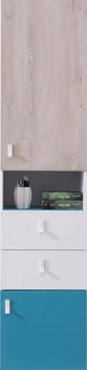 Dobrá modrá v kombinácii s dubovým dekorom, pevným LTD materiálom s jemnými líniami. To sú výrazné prvky tejto detskej zostavy, s ktorou ľahko vytvoríte pohodou a hravú atmosféru.