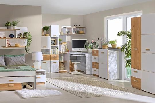Šatníková skriňa Lorento L1 je ideálna do detskej izby a izby pre teenagerov. Nábytok spája rysy minimalistického a škandinávskeho štýlu. Neutrálna farba je vhodná ako pre dievčatá tak aj chlapcov.