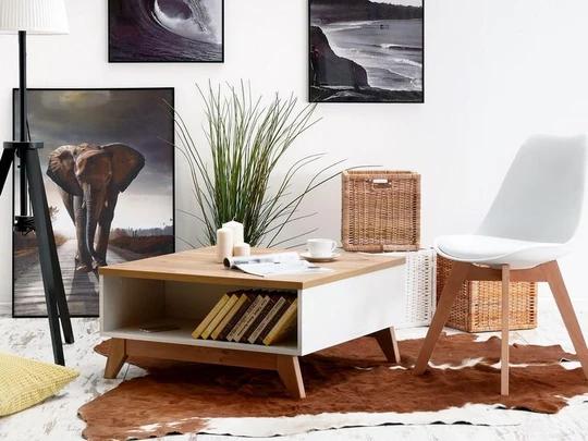 Stolek Georgia spojuje stylový design s praktičností. Díky prostorné otevřené polici nabízí dostatek místa pro uložení všeho, co chcete mít po ruce. Je vyroben z kvalitních materiálů, které odolávají běžnému opotřebení i drobným poškozením, takže si svůj moderní vzhled zachová dlouhodobě. Jeho čisté linie a univerzální tvar z něj dělají skvělý doplněk do každého obývacího pokoje.