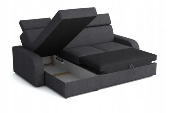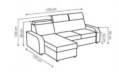 Sedačke nechýba úložný priestor v rohovej časti a rozkladacie funkcie, ktorá ponúka rozmer spacie plochy 200x130 cm. Na každodenné spanie ju ale určite neodporúčame. Občasné šlofíka alebo lenivé dni však spoľahlivo zvládne. Nastaviteľné opierky hlavy posunú váš relax na vyššiu úroveň.