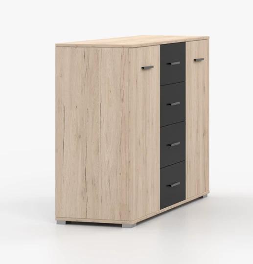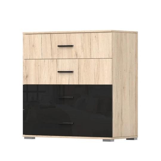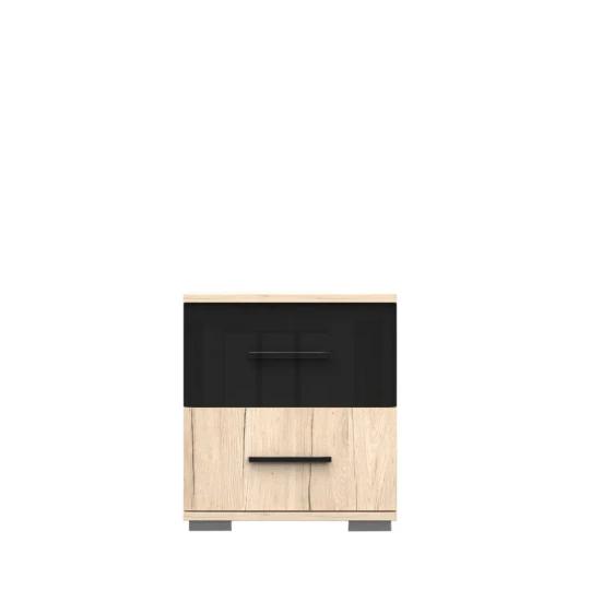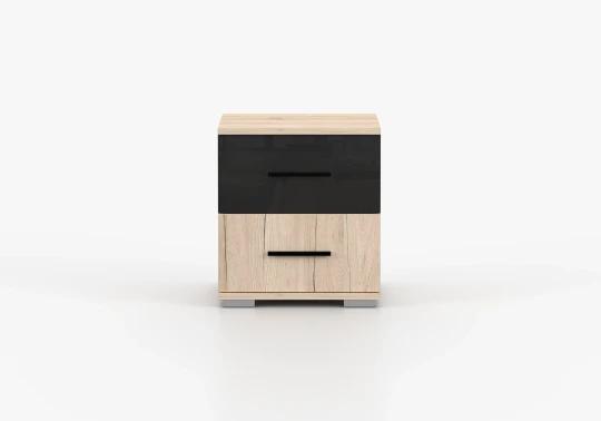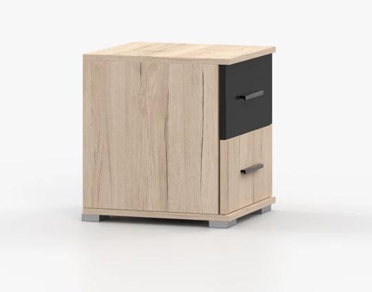 Celok dopĺňajú praktické nočné stolíky a komoda, ktoré rozširujú úložné možnosti a pomáhajú udržať spálňu prehľadne usporiadanú. Nábytok je vyrobený z kvalitnej laminovanej dosky s odolnými ABS hranami, čo zabezpečuje pevnosť, stabilitu a dlhú životnosť pri každodennom používaní.