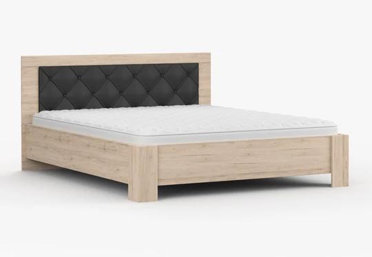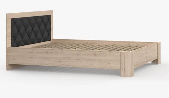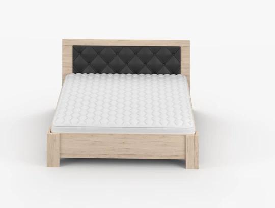Súčasťou spálne je aj manželská posteľ s ložnou plochou 160 × 200 cm, ktorá poskytuje komfortné zázemie pre kvalitný spánok. Dekoratívne čalúnené čelo postele zvyšuje pohodlie pri relaxe a zároveň podčiarkuje moderný vzhľad celej zostavy.