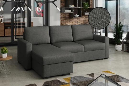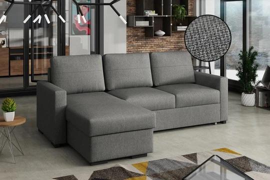 Medzi výhody rohovej sedačky Luther patrí úložný priestor a rozkladacie funkcie s rozmermi 137x200 cm s možnosťou občasného spánku.