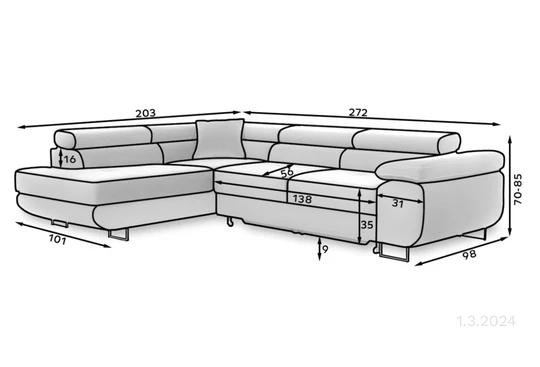 ASTER moderní rozkládací rohová sedačka s polohovacími opěrkami