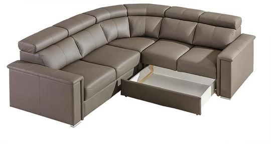Sedačka má rozkladací funkciu, úložný priestor a nastaviteľné opierky hlavy.