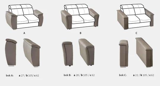 Okrem možnosti výberu vlastného druhu a farby poťahu možno sedačku objednať aj v pravej koži.