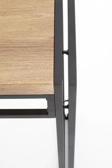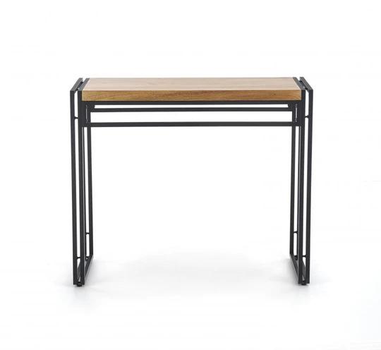 Moderný písací stôl s doskou v dekore zlatý dub, ktorý výborne ladí s čierno práškovanými nahomi.