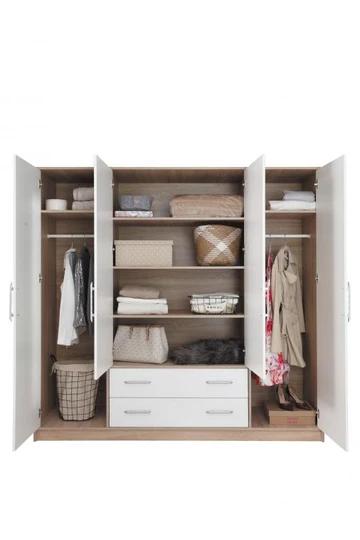 Vďaka modulárnemu riešeniu si môžete zostaviť šatníkovú skriňu presne podľa vašich potrieb – či už hľadáte kompaktné úložné riešenie do menšieho priestoru alebo veľkú šatníkovú zostavu pre kompletnú organizáciu oblečenia.