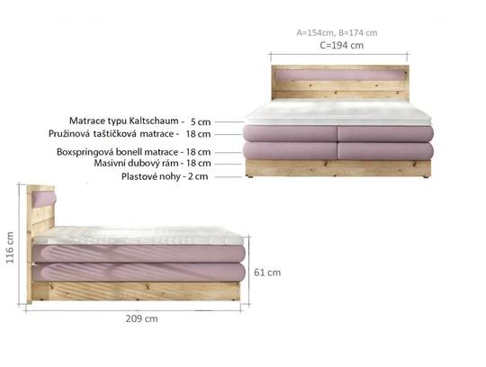 Luxusná kontinentálna posteľ (boxspring) 180x200 cm z masívneho dubového dreva.