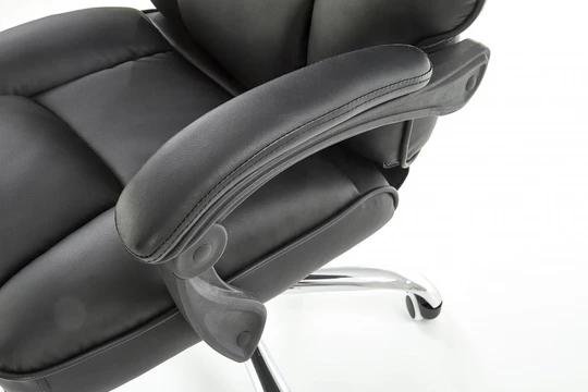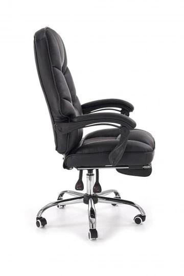 Kancelárska stolička je čalúnená čiernou eko kožou; konštrukciu tvorí chróm.