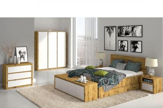 Systém Lamia je možné nakúpiť ako hotovú zostavu, ktorá obsahuje zloženie ako na hlavnej úvodnej fotografii - posteľ 160x200, 2x nočného stolíka, skrine a dvoch komôd.