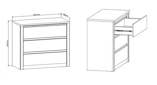 Je vyrobená z kvalitnej laminovanej dosky a MDF dosky, vďaka ktorým je odolný voči mechanickému poškodeniu (pr. Poškriabanie), zachováva si svoju štruktúru a je ľahko umývateľný. Doplnený je plastovými úchytkami.