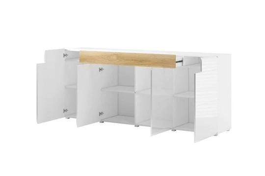 CALGARY zostava je spojením najmodernejšieho dizajnu s prírodnými prvkami. Tento efekt umocňuje farebné spojenie bieleho lesku s dubom san remo.