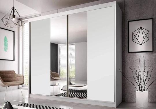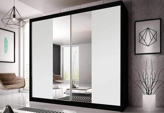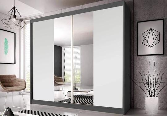 Veľká posuvná skriňa disponuje štedrým úložným priestorom, ktorý ocenia predovšetkým poctivo nakupujúci ženy. Vnútri sa nachádza niekoľko praktických políc a šatníková tyč. Zrkadlo vám pomôže vychytať posledné detaily pri obliekaní. Nábytok je vyrobený z kvalitného lamina, ktoré je veľmi odolné voči mechanickému poškodeniu (pr. poškriabanie) a nepodlieha vlhkosti či slnečnému žiareniu.