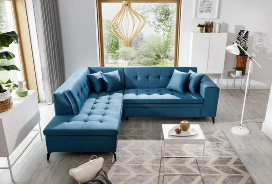 Pri rohovej sedacej súprave Saleto je možné meniť druh a farbu látky tak, aby čo najlepšie zapadla do vašej obývačky.
