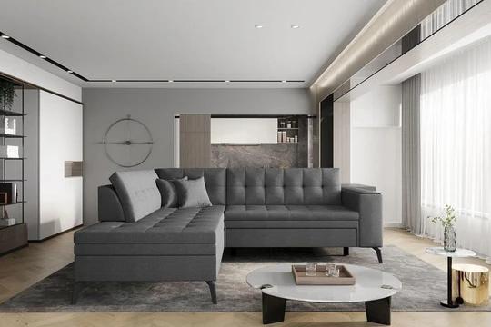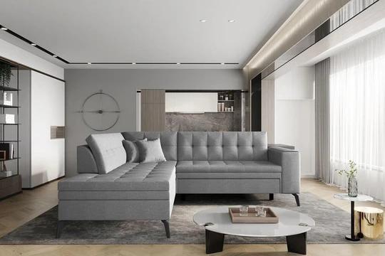 Konštrukcia rohovej sedacej súpravy je pevná a odolná proti všetkým poškodzujúcim vplyvom, a preto sa môžete spoľahnúť, že vám bude slúžiť dlho a dobre. Saleto je vyplnená kvalitnou PUR penou T3040, ktorá má výborný odpor proti stlačeniu a vysokú tvarovú stálosť. Pružina typu „faliste“ zvyšuje komfort a podporuje funkciu peny. V cene súpravy sú samozrejme 4x dekoračné vankúšiky.