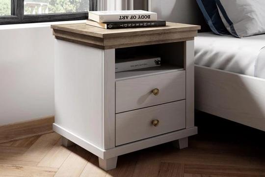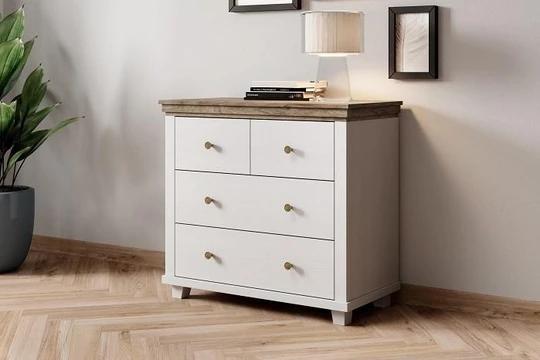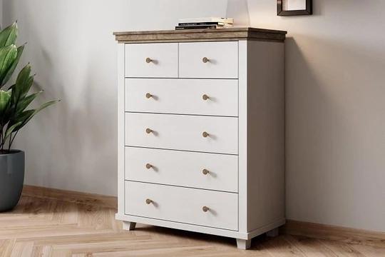 Nábytok zo systému Rennes sa vyznačuje klasickým dizajnom, ktorý zapadne do každého interiéru. Kombinácia bieleho dreva s dubom jej dodáva na elegancii.
