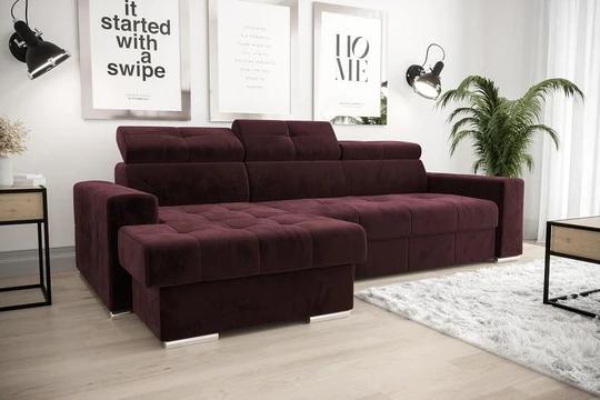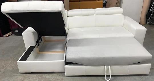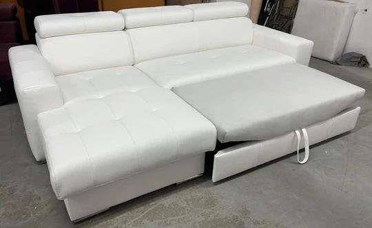Zadní strana je čalouněná, také ji můžete umístit do rohu i středu místnosti. Nožky jsou chromované.