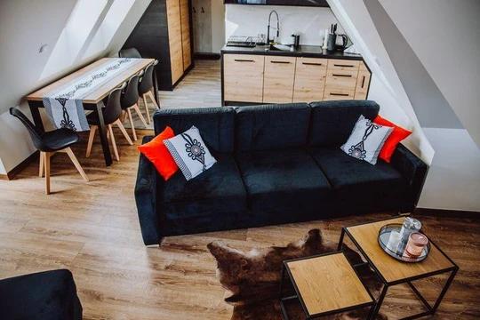 Zadná strana je čalúnená, takže ju môžete umiestniť do rohu aj stredu miestnosti. Nôžky sú chrómované.