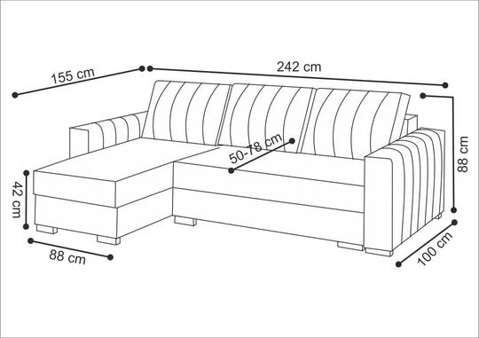 Sedačka vám poskytne všetko, čo potrebujete na vytvorenie obývačky, ktorú si zamilujete. Disponuje úložným priestorom v sedacej časti a druhým v otomanovej časti. Nechýbajú ju ani rozkladacie funkcie, ktoré ponúkajú rozmer spacej plochy 205x140 cm. Na každodenné spanie ju ale určite neodporúčame.