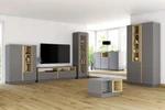 Zostava sa skladá z: KONF. STOLÍK 06+ REGÁL 08+ KOMODA 180 CM 04+ VITRÍNA 02+ TV STOLÍK 09+ REGÁL 07