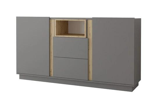 Zostava obsahuje skrine, regály a komody rôznych veľkostí. Disponuje množstvom úložného priestoru pre dekorácie, fotografie či upomienkové predmety.
