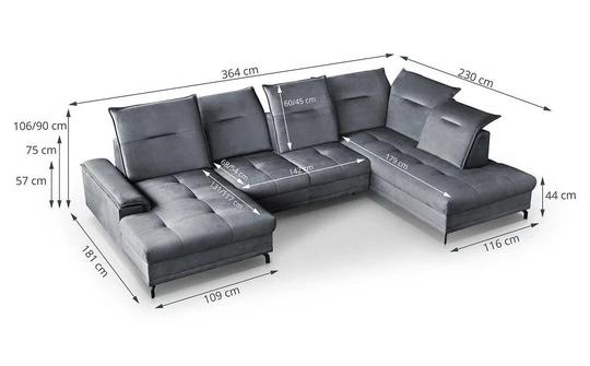 FERGUS moderná sedacia súprava v tvare U s nastaviteľnou hĺbkou sedenia