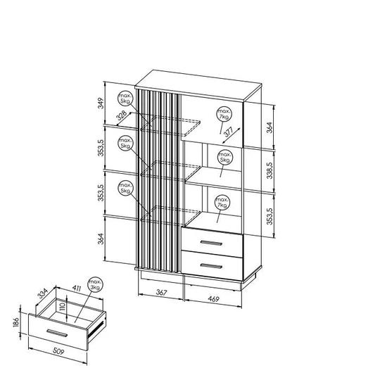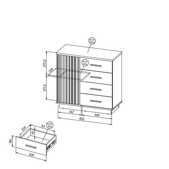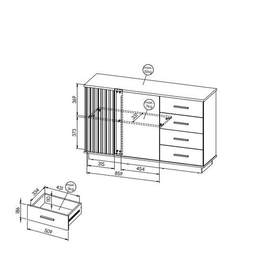 Nábytok z tohto programu bol navrhnutý tak, aby bol praktický, elegantný a jeho úložné priestory dobre poslúžili. Skvelým dizajnovým prvkom je použitie vertikálneho designu lamiel.