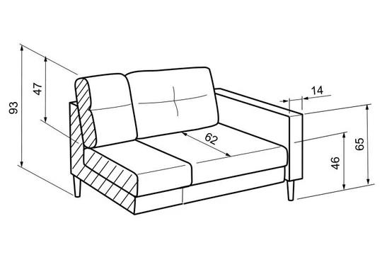 Konštrukcia pohovky je tvorená kombináciou masívneho dreva a drevotriesky. Pohovka je vyplnená kvalitnou PUR penou, ktorá má výborný odpor proti stlačeniu a vysokú tvarovú stálosť. Pružina typu faliste zvyšuje jej komfort a celkovo podporuje funkciu peny.