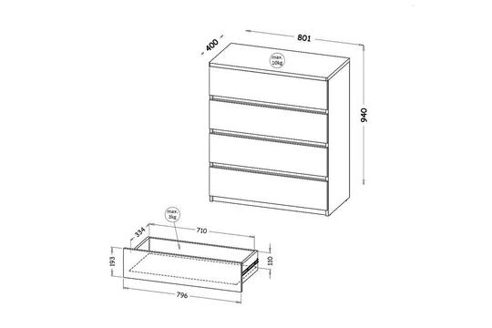 Celá zostava je vyrobená z kvalitného lamina, ktoré je pevné a vďaka tomu aj veľmi odolné proti mechanickému poškodeniu (pr. poškriabaniu). Nedochádza časom k zmene farieb, je odolné voči krátkodobému pôsobeniu vody a ľahké na údržbu. Zostava je opatrená hranou ABS, ktoré sa vyznačujú svojou pevnosťou a odolnosťou voči nárazom.