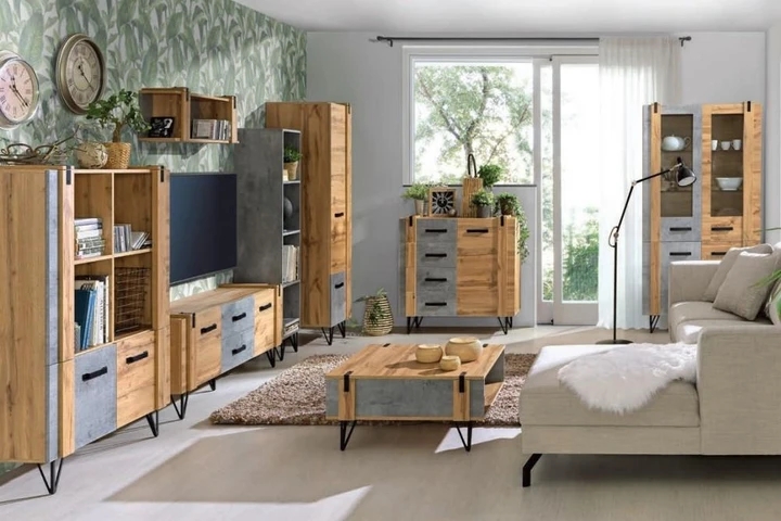 Moderná a nevšedná obývacia zostava MACON v industriálnom dizajne. Nábytok z tohto programu bol navrhnutý tak, aby bol funkčný a designový zároveň.
