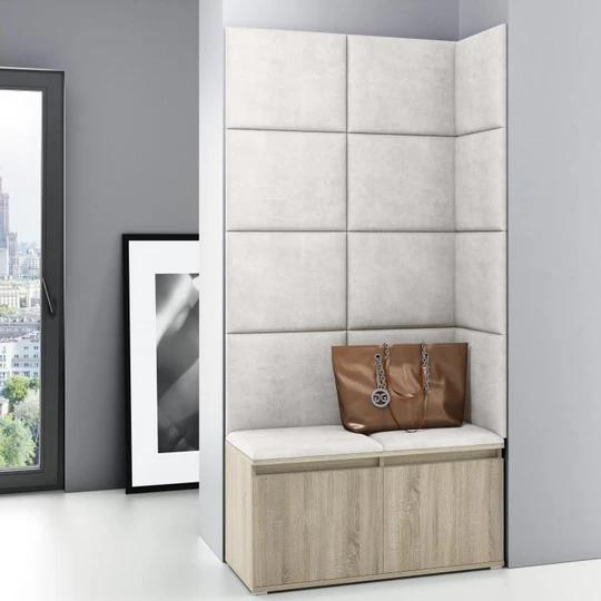 Tiež to poznáte? Otvorte hlavné dvere domu a na zemi sa váľa plno pohodených topánok, tašiek, sem tam aj nejaké to oblečenie? S týmto už je koniec. S našou elegantnou predsieňovou stenou DIAMOND budete mať všetko krásne uložené a navyše rozarí Vašu chodbu a dodá jej pocit útulnosti. Nábytok je vyrobený z kvalitného lamina o hrúbke 1,6 cm, ktorý je odolný proti poškriabaniu, vlhkosti a vysokým teplotám. Navyše je nenáročný na údržbu. Hrany sú z PVC materiálu. Predsieňová stena poskytuje priestor pre zavesenie kabátov, búnd či iných odevov, ale aj pre topánky. Najviac oceníte ale miesto na sedenie, ktoré Vám umožní ľahšie obúvanie. Stena sa pýši svojimi modernými a hlavne aj farebnými čalúnenými panelmi, ktoré sú v poslednej dobe veľkým trendom. Sú vyrobené zo zamatovo hladkej látky. Na výber máte až niekoľko odtieňov. Zostava sa skladá z botníku, vešiaku a panelov.