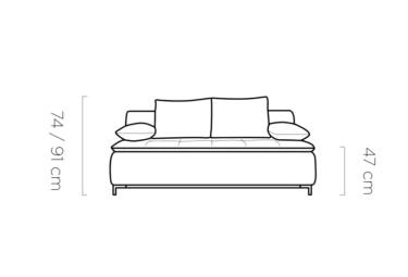 Pohovka je rozkladacia a počas chvíľky ju ľahko rozložíte v pohodlné lôžko o rozmere 144 x 200 cm. Neodporúčame ju ale na každodenné spanie. Je teda vhodná napr. na leňošenie pri televízii alebo na prespanie návštevy. Systém rozkladania je typu DL- časť pohovky sa vysunie dopredu a chrbtová časť sa sklopí smerom dole. Nechýba tu ani praktický úložný priestor o veľkosti 177 x 62 x 16 cm.