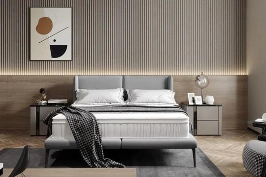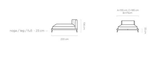 Čalúnená posteľ VINCE 180x200 zaujme na prvý pohľad svojim minimalistickým dizajnom a vysokým čelom.