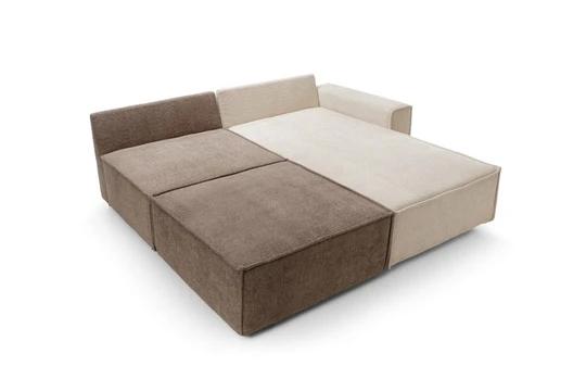 Zadná strana je čalúnená, takže ju môžete umiestniť do rohu aj stredu miestnosti. Sedačka ponúka možnosť meniť druh a farbu látky podľa svojich preferencií. Rovnako je na výber strana rohovej časti sedačky.