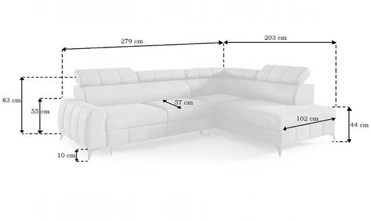 Zadná strana je čalúnená, takže ju môžete umiestniť do rohu aj stredu miestnosti. Sedačka ponúka možnosť meniť druh a farbu látky podľa svojich preferencií. Rovnako je na výber strana rohovej časti sedačky.