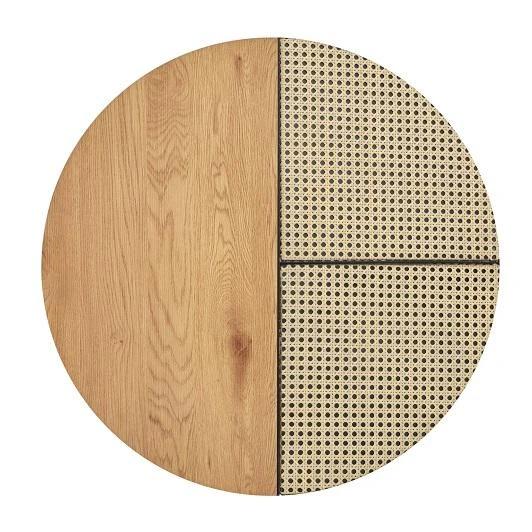 GARMINA set dvoch konferenčných stolíkov v boho štýle vyrobených z MDF dosky, práškovanej ocele a ratanu.